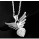 Angel Wing 925 Sterling Silver Necklace with Cubic Zirconia Encrusted Heart